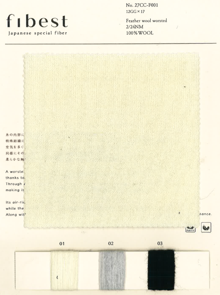 糸の内部に空気を含むような構造による軽さが特徴の梳毛ウール糸。同一番手の他の素材に比べ、約30%軽量に。ふくらみのあるソフトな肌触りが際立ち、同時に高い保温力も発揮。