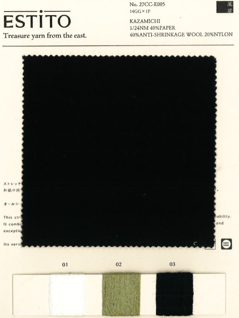 This stretchable washi–wool blend incorporates anti-shrink wool for easy care and machine washability.
