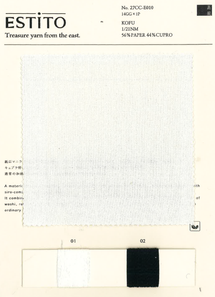A material made by twisting coyori-type washi (50% Manila hemp, 50% conifer pulp) together with siro-compact spun cupro fiber.