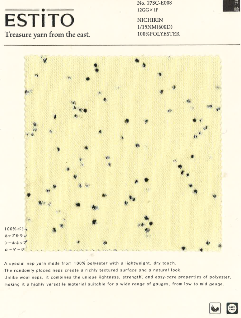100%ポリエステルの軽量かつドライな質感を持つ特殊ネップ糸です。