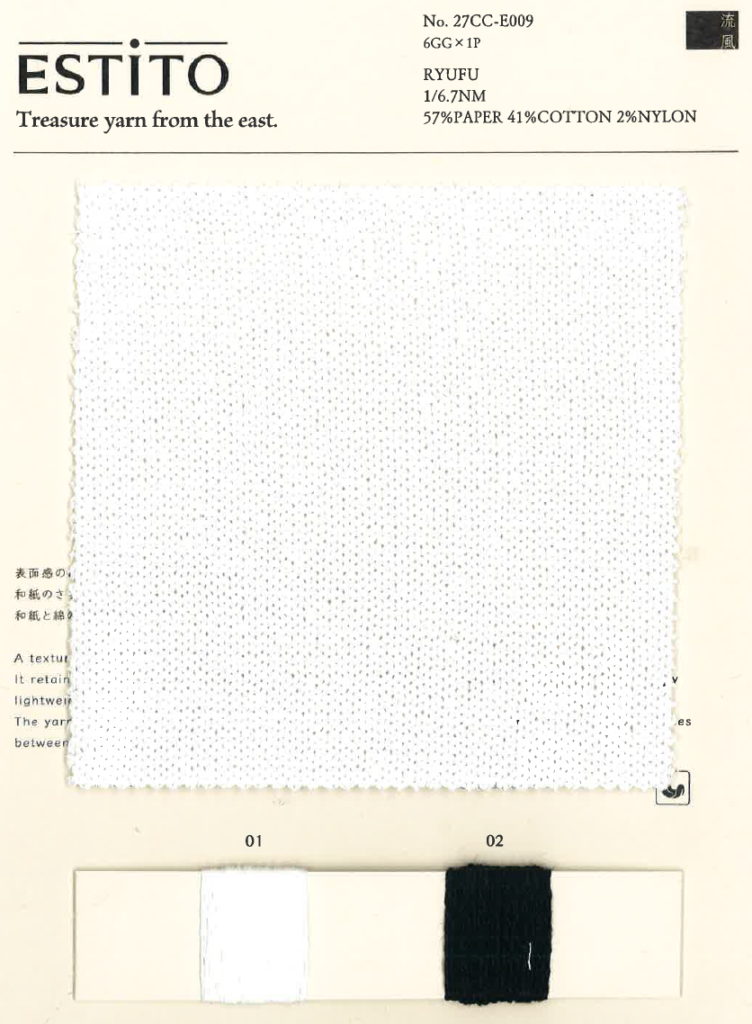和紙のさらりとした風合いを持ち、太番手でありながら軽量感があるのがポイント。